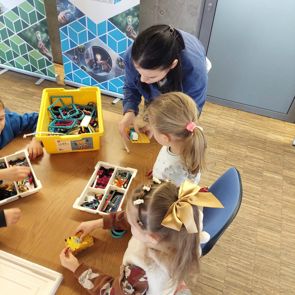 Podczas wizyty mali goście zwiedzili Park oraz wzięli udział w warsztatach robotycznych. Pracując w kilkuosobowych zespołach budowali własne roboty z klocków LEGO, a następnie programowali je i testowali w różnych zadaniach. Było dużo kreatywności, współpracy i radości z odkrywania, jak działa technologia.